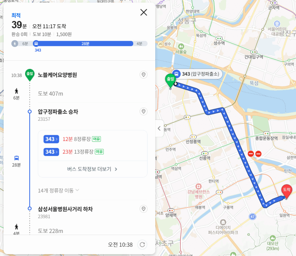 삼성서울병원까지 버스로 이동하면 39분이 소요됩니다.
